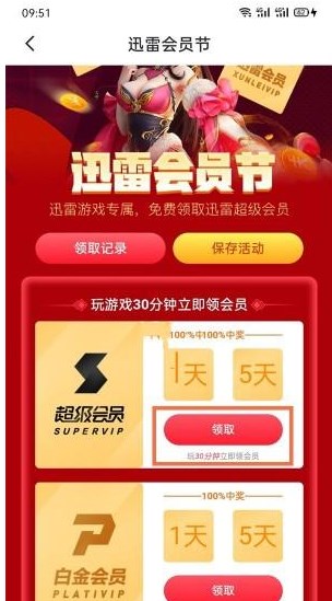 通过打游戏的方法就能免费领1-5天迅雷会员。