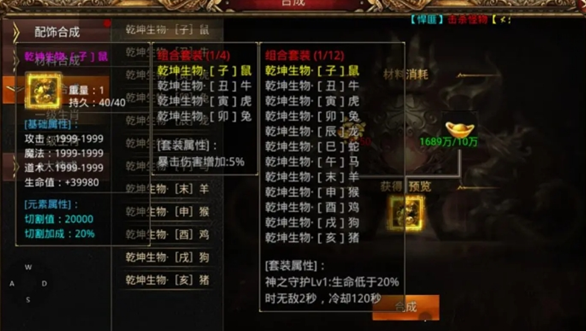 TIP:重点!!! 生肖集齐4件有套装效果1-4(增加暴击伤害)、5-8(增加暴击几率)