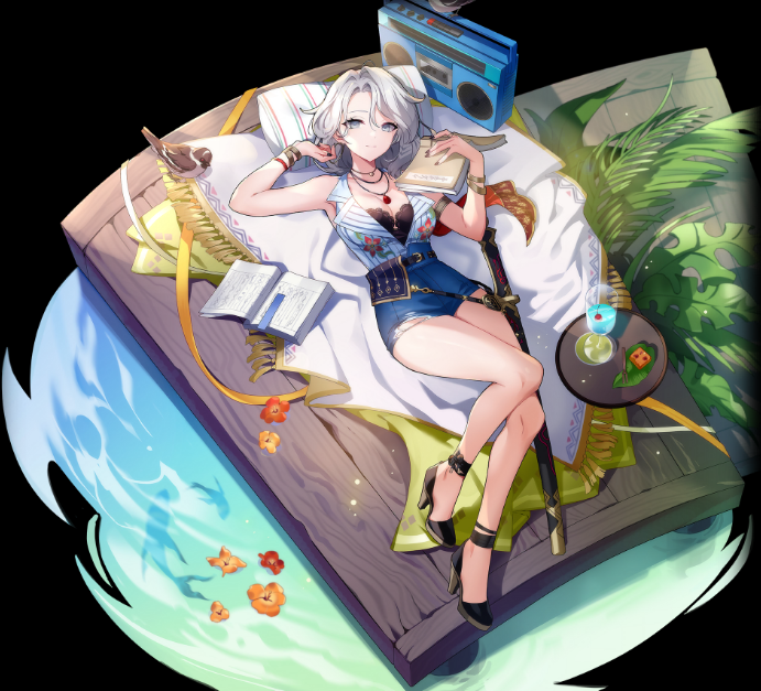 等级1:挥剑生成凝聚之气,射向攻击力最高的敌人,对目标与周遭3m的敌人造成攻击力280%的伤害,使其陷入3秒晕眩状态,并在10秒内使受击目标的体力恢复量减少60%。战斗开始时,赋予自身效果<余晖>,在有该效果的状态下使用<划破余晖>时,消耗该效果立即恢复魔力5000(等级1解锁)