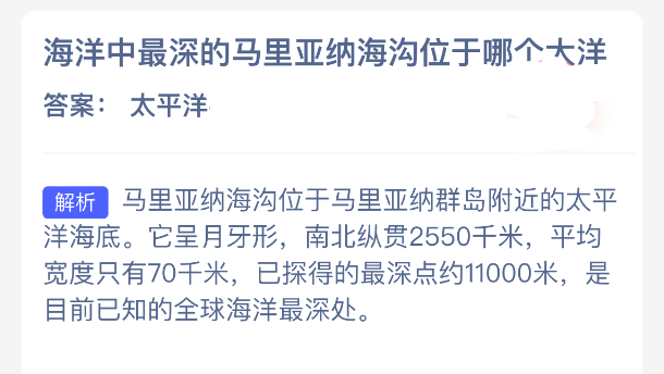以上就是海洋中最深的马里亚纳海沟位于哪个大洋?神奇海洋今天答案最新2025年12月16日分享,更多相关攻略内容,请点击关注0405手游网更新!