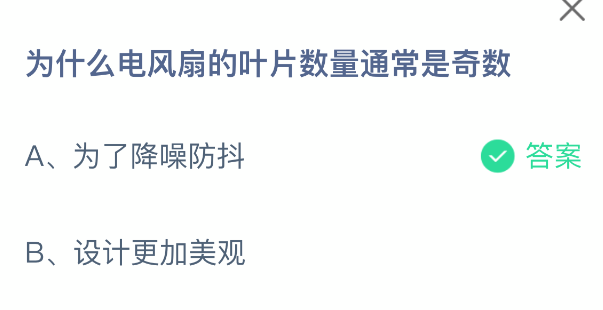 以上就是为什么电风扇的叶片数量通常是奇数,支付宝蚂蚁庄园2025年12月17日答案最新,更多精彩内容,请点击关注0405手游网更新!