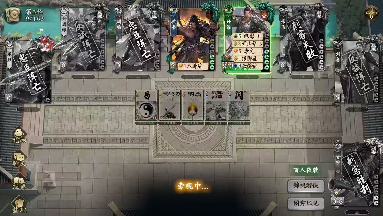 第二个技能车骑合战,在游戏开始和回合开始时,如果装备区内没有武刚车,则添加并装备武刚车,当其他角色装备坐骑牌时,可以用装备区的武刚车复制其效果,当失去武钢车时,则重制其他技能。但是也有限制条件,就是每个武刚车每个坐骑只能复制一次。因为卫青只有两个技能,所以此效果特指的就是直捣龙城。也就是只要失去武钢车,就可以再发动一次一技能,能带来同样强力的爆发。