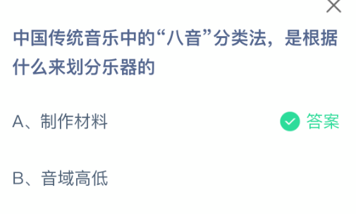 以上就是中国传统音乐中的“八音”分类法,是根据什么来划分乐器的,支付宝蚂蚁庄园2025年12月22答案最新,更多精彩内容,请点击关注0405手游网更新!