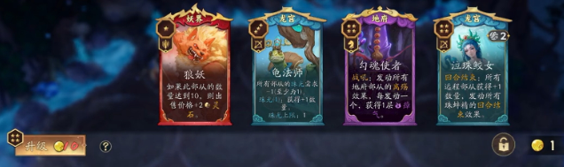 天书简单来说就是代号妖鬼里的商店,它会随机刷出不同类型的部从供玩家去选择,所能出现的部从牌星级与天书的等级有关,各位可消耗灵石来帮助天书升级,并且它升级所需消耗的灵石,会随着回合数不断降低。