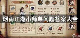 在烟雨江湖中,与小师弟的互动问答是游戏里有趣的一部分。许多玩家都想知道这些问题的答案,以便能更深入地体验游戏剧情与特色。