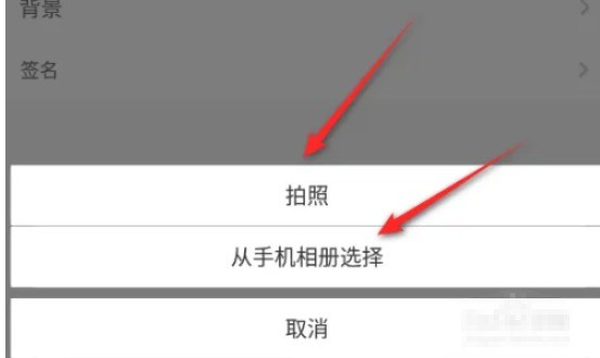 之后点击拍照或从手机相册选择,然后更换头像即可。