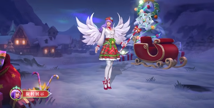 皮肤特效:技能特效融入雪花与圣诞铃声元素,普攻附带雪花飘落特效,大招释放时圣诞恋歌响起,浪漫满分。