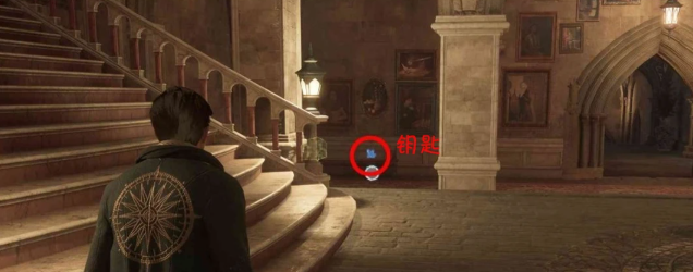 从传送点右边通道进入左转进入朝上走在大楼梯上找到钥匙