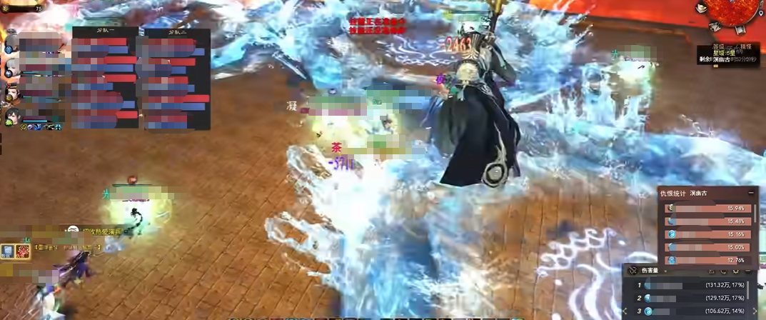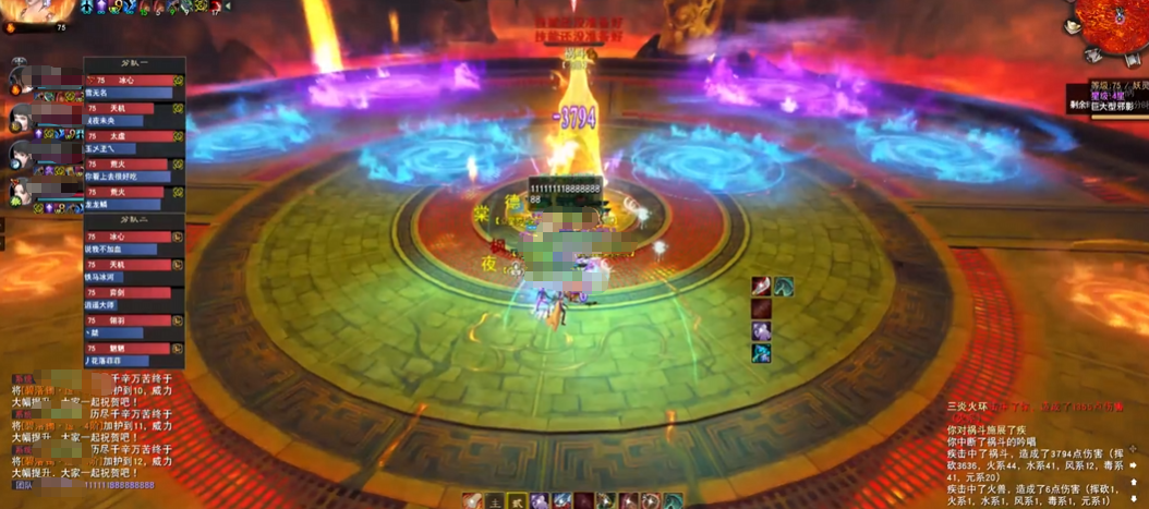 针对第二阶段Boss,需规避非必要机制——四相凝视与正对/背对判定属于强制触发环节,不可跳过;其余奇遇类事件建议全程跳过,以压缩无效时间。全体成员常规站位统一面向Boss正面12点钟方向(四相阶段除外)。地面会出现红、蓝、紫三色预警圈,按顺序依次爆炸:红色圈与远处双蓝圈为必避区域;紫色圈爆炸瞬间,所有治疗职业须同步释放“小八”技能。战斗中由1名天机开启护盾,弈剑职业布置剑阵后转为普攻输出,其余成员在剑阵生效期间集中使用保命类技能应对高压期。