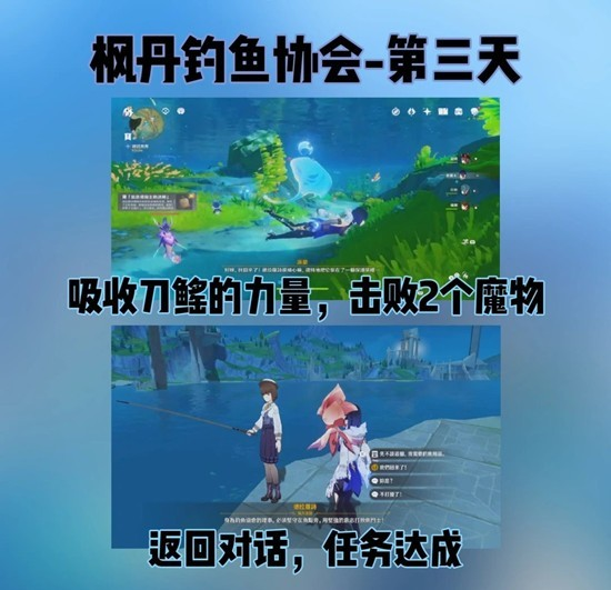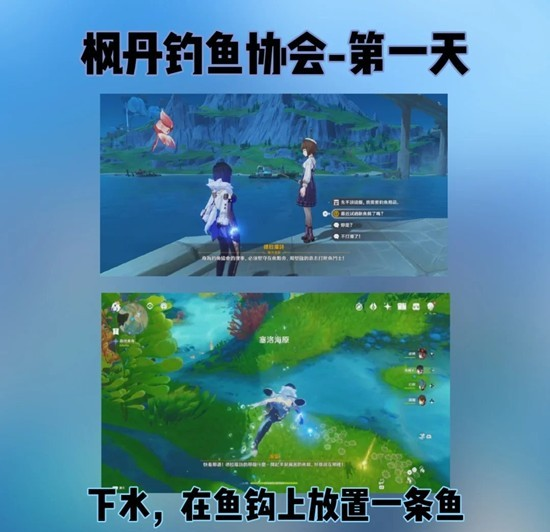•与NPC对话后,下潜到水下,在鱼钩上放置一条鱼