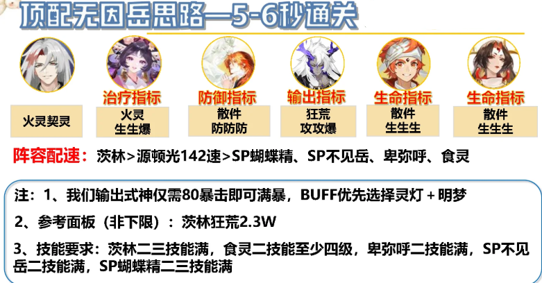 阵容配速:茨林>源顿光142速>SP蝴蝶精、SP不见岳、卑弥呼、食灵