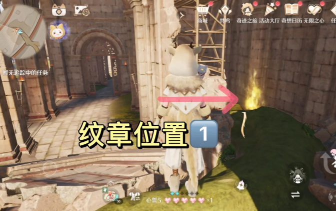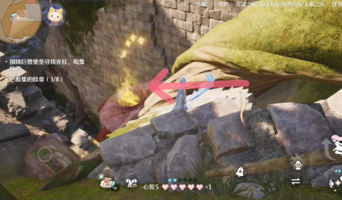 无限暖暖逸事任务中的归来,旧日的泪水·堡垒之章,需要收集7个纹章,这些纹章都分布在巨兽堡垒周围各个不同的区域中,收集完后就可以打开大门,里面有6个宝箱和若干噗灵。具体7个纹章的分布位置内容见以下正文!