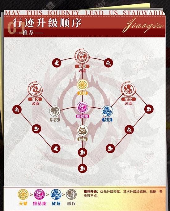 推荐升级:优先升级天赋,其次升级终结技、战技,普攻可不点。