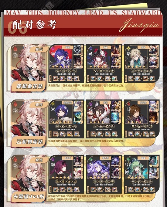 以上就是崩坏:星穹铁道椒丘角色培养攻略,椒丘养成及配队详细推荐的全部内容了,更多游戏资讯,攻略内容敬请关注切游网,您的支持是我们努力的动力!