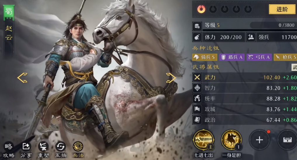 推荐首套成型配置为蜀国主题反击阵:以赵云为输出轴心,依托其武力成长机制持续抬升反击阈值;刘备携带青州军,激活全队群体反击响应;关羽作为不可替代的续航支点,保障多轮战斗中的血线安全。此组合兼顾机制联动性与资源获取友好度,新手玩家可快速上手并建立清晰操作节奏。