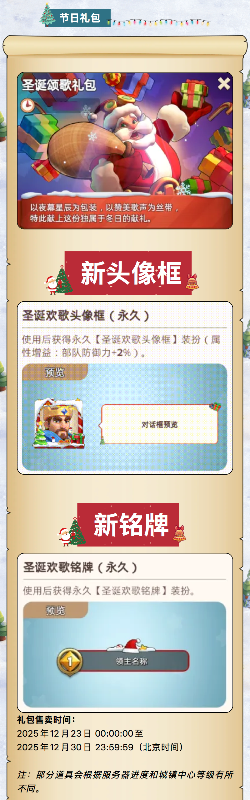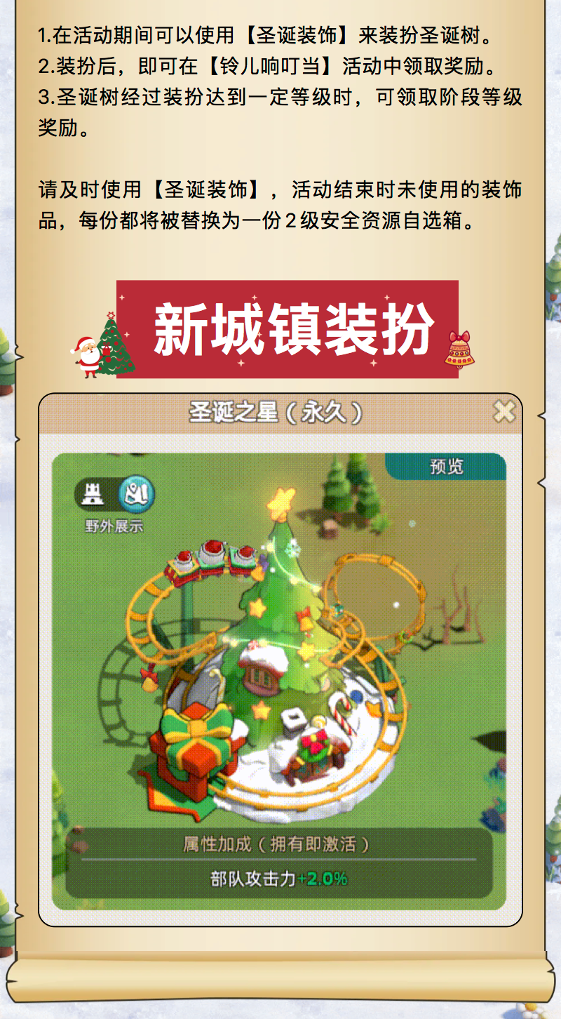 排行前10的玩家还可以获得新的城镇中心装扮“圣诞之星”。