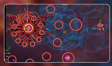 魔法工艺第三关最终Boss【不可名状物】拥有多种致命技能:黑色弹幕中的鬼脸会追踪并施加诅咒;紫色光线造成移动反转,需利用地图边缘或闪电疾行躲避;半血后召唤的虫群需快速AOE清理;狂暴时的全屏扩散圆环弹幕极难规避。