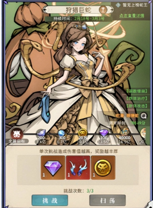 1、【狩猎巨蛇】--挑战BOSS刷材料