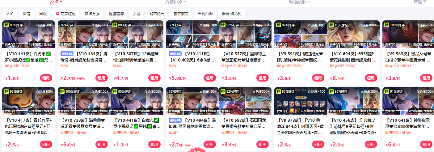 “租号玩”作为热门的账号交易与租赁平台,其手续费收取标准因用户身份与游戏而异。商户需缴纳月度或年度服务费(如150元/月、1200元/年),享受更多上架数量与管理工具。所有订单结算时,若手续费低于0.35元则按0.35元收取(《火影忍者》等部分游戏除外),高于则按比例计算。普通号主最多可上架3个账号,每笔订单同样适用最低收费标准。