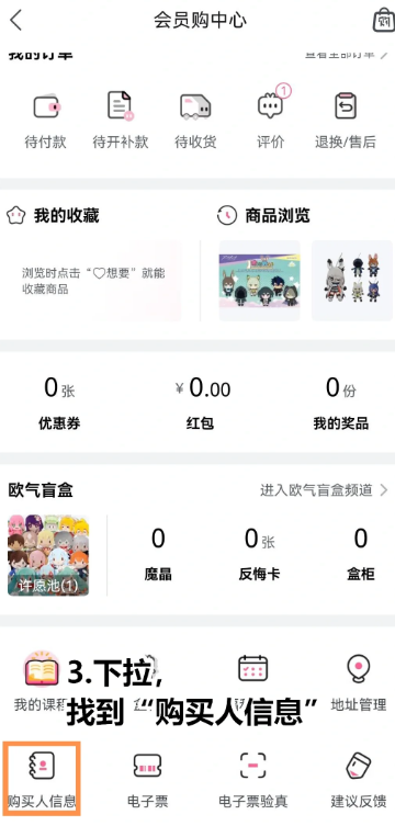 1.进入会员购界面后点击右上角用户头像