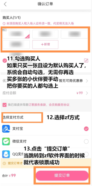 7.确认购票人并完成支付
