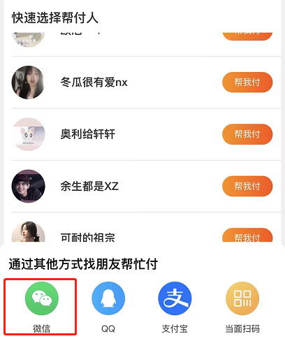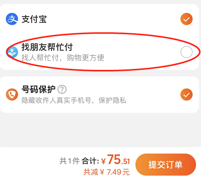 2. 在支付方式中选择"找朋友代付"功能,避开直接支付宝支付