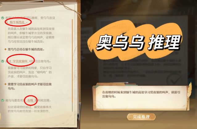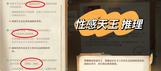 无限暖暖伊赞之土的搭配势力赛中,需要完成的推理有超大菇、薇薇安、奥乌乌、性感天王,其中超大菇推理答案为矮小、背着小挎包、蜗牛、蜗牛农场;薇薇安推理答案为靠近水源、火堆、巨人墓园;奥乌乌推理答案为蜗牛城高处、学荧夜狼叫、夜晚;性感天王推理推理答案为森林狂欢节、手工作坊东边的树林、狂舞者“雅雅”。