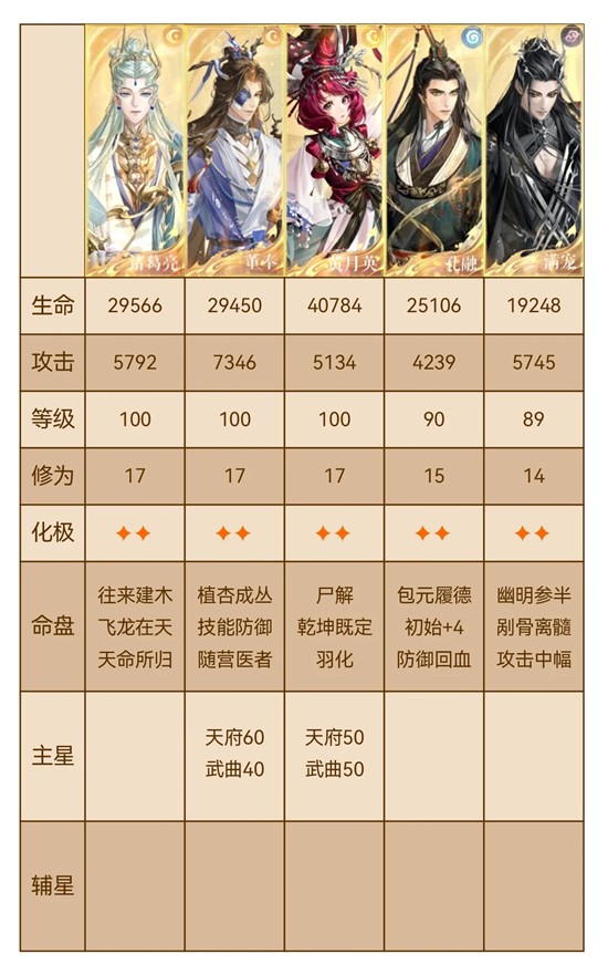练度叠星要求不是很高(尤其是满宠,他基本起到一个拐的作用),命盘的配合更重要