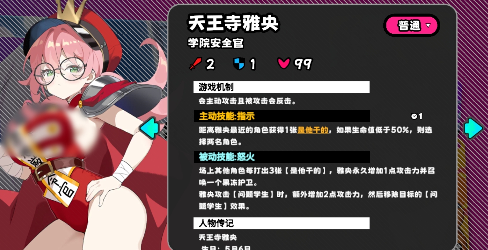 安全官的机制较为复杂,它会给予玩家一张名为是他干的手牌,留有手牌时玩家会在回合结束都掉血,且给队友使用时会扣掉队友血量,因此玩家们可在商店里购买手牌,确保手牌超出8张,方便自己能将它丢弃,有丢牌技能的玩家也可用该方法来规避这一机制。此外,若玩家没有办法主动去消耗卡牌,也可直接使用在血高且具备回血能力的队友身上,令他获得问题学生效果,但安全官攻击该玩家时能加攻,且每当玩家使用是他干的这张牌的次数达到3次时,安全官还会永久加1攻,且立刻召唤一只果冻护卫,所以更建议各位利用丢牌的方式来确保自己不会受伤,非必要情况下别给队友使用。