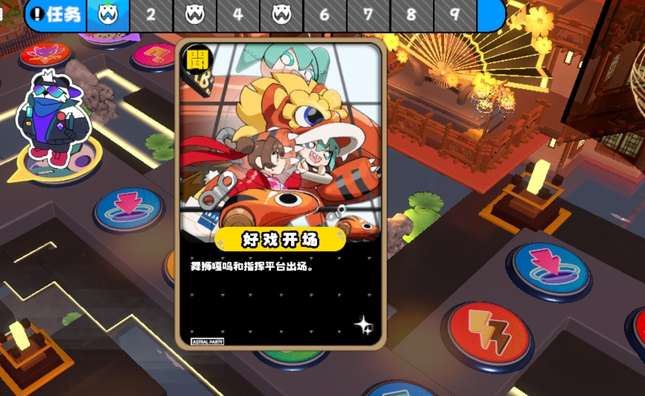 因此,通关水乡古镇的要点就在于多击倒爆竹呱呱拿到高升炮,并用它来清除氛围机器人和舞狮嘎呜的叠层,确保自己与队友能更顺利地去与怪物作战。如果位置允许,更建议第一位行动的玩家去使用高升炮来完成这个任务,这样后面行动的玩家也都能享受到叠层清除后的效果,能避免伤害浪费。同时,还要多用手牌或技能去攻击指挥平台,利用它的机制以及与舞狮嘎呜共享生命的特点,来削减掉两只boss的血量,所以玩家们也可多从商店里买一些伤害能力出色的手牌,专门将它们用在指挥平台身上。