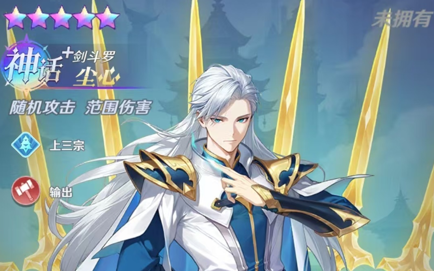 在这款手游里面,尘心是一个输出型的角色,羁绊属于上三宗,他的特点是随机攻击和范围伤害,而这一点也使得他在很多战斗中都能有非常亮眼的表现,他的第1个技能叫做剑破长空,在施展之后将会召唤出七杀剑,范围内的敌人都将会受到540%的伤害,而从这个技能描述上来看,这可以说是目前游戏中所有角色里面伤害最强的一个技能了。第2个技能的名字叫做长剑出锋,将会召唤出4把剑,随机攻击面前的敌人,每把剑造成的伤害为72%。