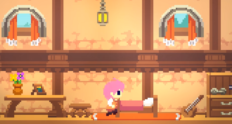 游戏开场为一段可跳过的剧情动画,随后主角在卧室苏醒。系统会引导完成基础跳跃操作,玩家可在房间内自由调查,初步了解角色状态与世界观设定。出门后与镇上儿童交谈,随即前往阁楼——此处隐藏一个宝箱,需先将箱子拖至墙角,再借力跃上顶部开启,内含多枚金币。