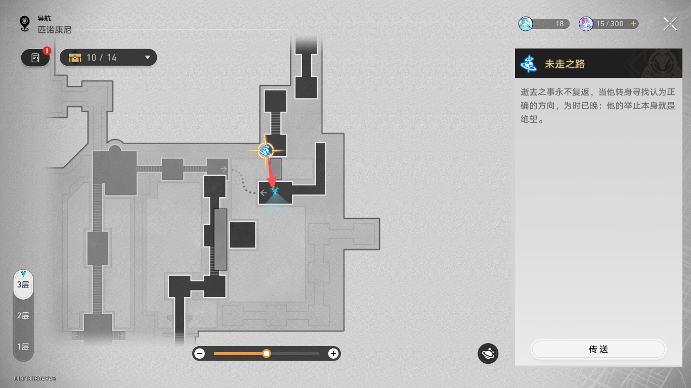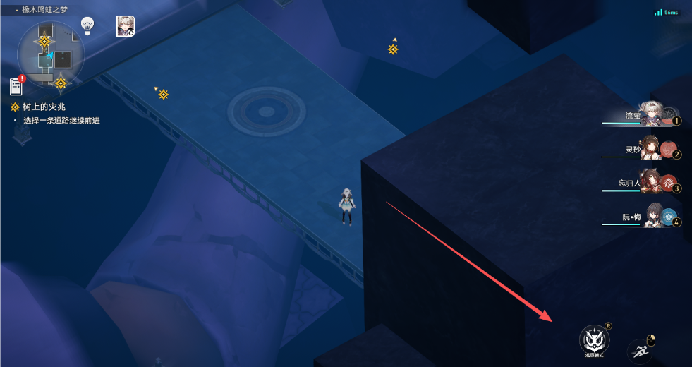 传送到橡木鸣蛀之梦地图右上角的【未走之路】锚点