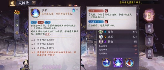 二技能:给敌方式神释放,敌方式神行动后扣除3点鬼火,若敌方鬼火扣完为0时,可以深度冻结对面式神。