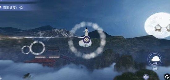 然后就是选择橙色“加速快”云,可以自行选择直接加速或者在飞过第一个云圈开始后再加速(因为白色的“飞得稳”云最高速度只有50,而最后一个成就要求的是55,橙色“加速快”是60)。