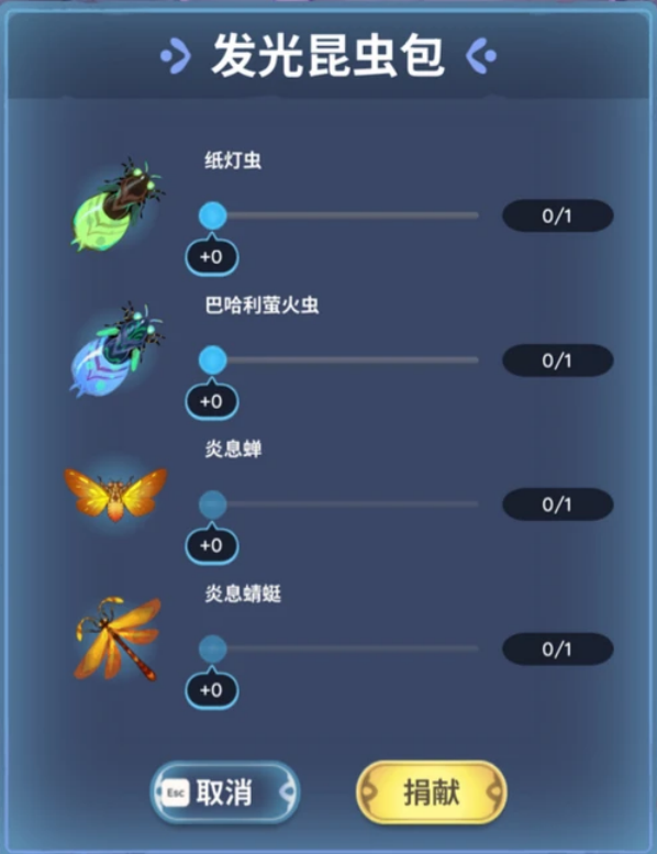 纸灯虫、巴哈利萤火虫、炎息蝉、炎息蜻蜓