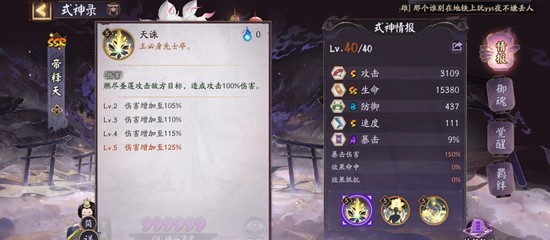 二技能:回合开始时,未出于无法行动状态,开启幻境(每有一名敌方降低全体友方速度3%但是呢敌方回合开始可以给行动条最前面的友方式神拉条30%)。