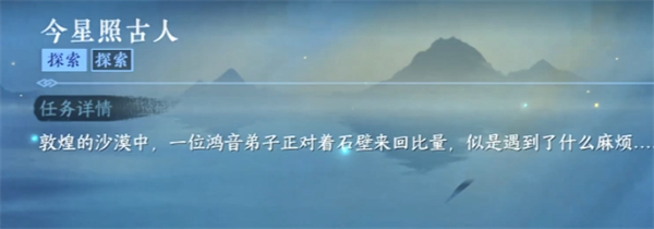 首先来到敦煌(584,1271)附近触发今星照古人探索任务