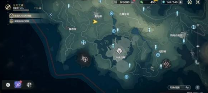 按更新后的地图信息,寻找4个人造月亮,分别在巨榕月池、信标附近的瀑布山洞里、最南边洞穴枯枝下、东面大树桩顶。(自上而下)