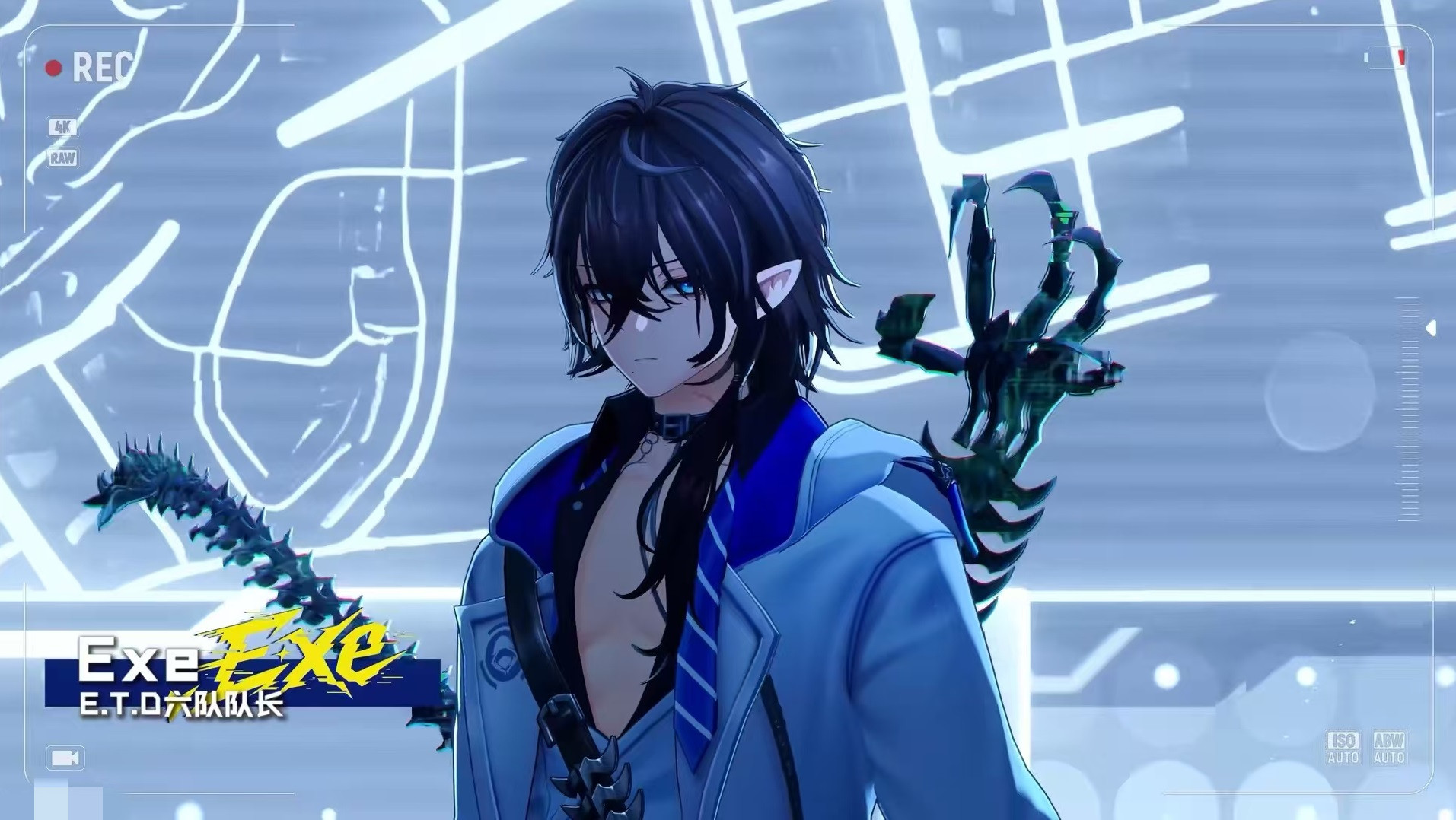 细节刻画上,卡厄斯拥有显著的异瞳特征——左眼带有明显旧伤疤痕,这一视觉符号不仅增强角色辨识度,也暗示其过往经历可能牵涉重要剧情线索。值得注意的是,同属ETD六队的另一位核心人物EXE,担任小队指挥官,人设为沉稳寡言型。二者在性格维度上形成鲜明对照,有望在后续剧情中构建富有张力的互动关系与叙事节奏。