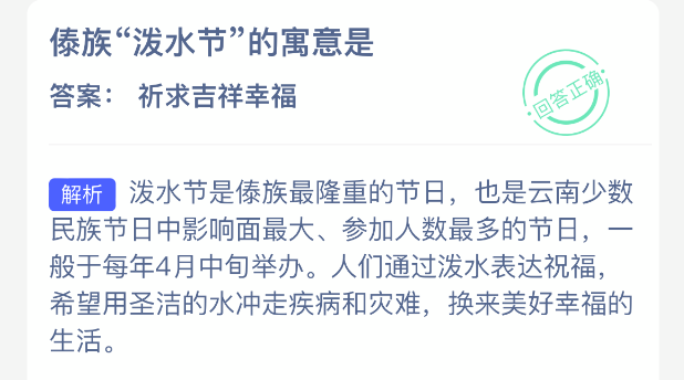 以上就是傣族“泼水节”的寓意是?支付宝蚂蚁新村最新答案2026年1月3日,更多精彩内容,请点击关注0405手游网更新!