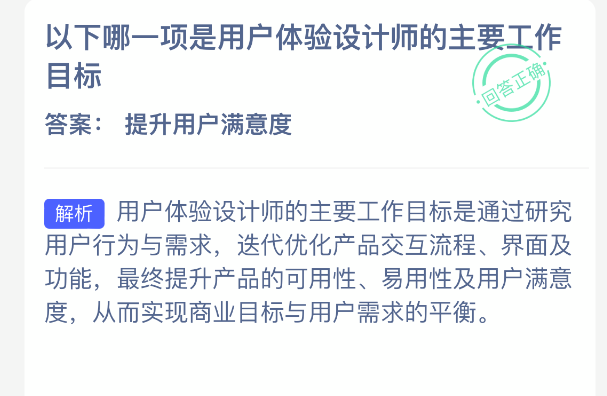 以下哪一项是用户体验设计师的主要工作目标?【蚂蚁新村每日一题】2026年1月4日题目已发布!坚持答题,积累木兰币,即可加速小镇建设。答对本题,立即可享“产速+3/时”的加速奖励!今天正确答案是【提升用户满意度】。提升用户满意度是用户体验设计师的主要工作目标之一。