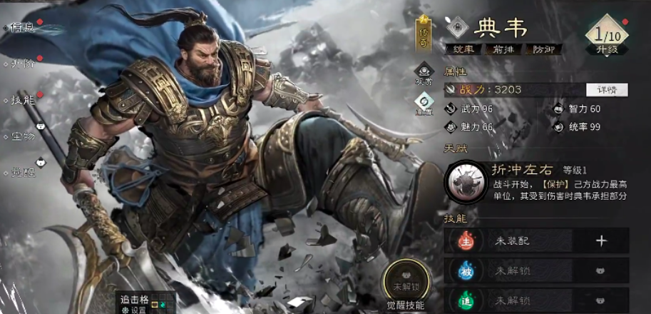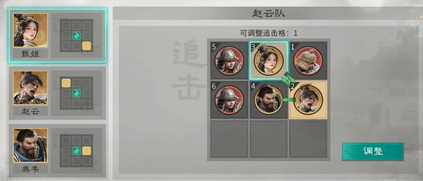 而他利用自己追击技能的话,是需要一定追击格子来进行触发才可以用到技能效果的,被动技能效果上面其实定位用善甲利兵可以给队伍带来的抵挡伤害就是其他角色比较需要的,因为典韦只要需要整体队伍的坦度有所提升,就可以让赵云带来足够的强度了,那么后期要保证整体克制关系成功释放的话,大家要注意,如果面对的是吕布这类角色,因为他带来的是群伤能力,所以赵云在攻打他们的时候要注意反击是否能够生成。