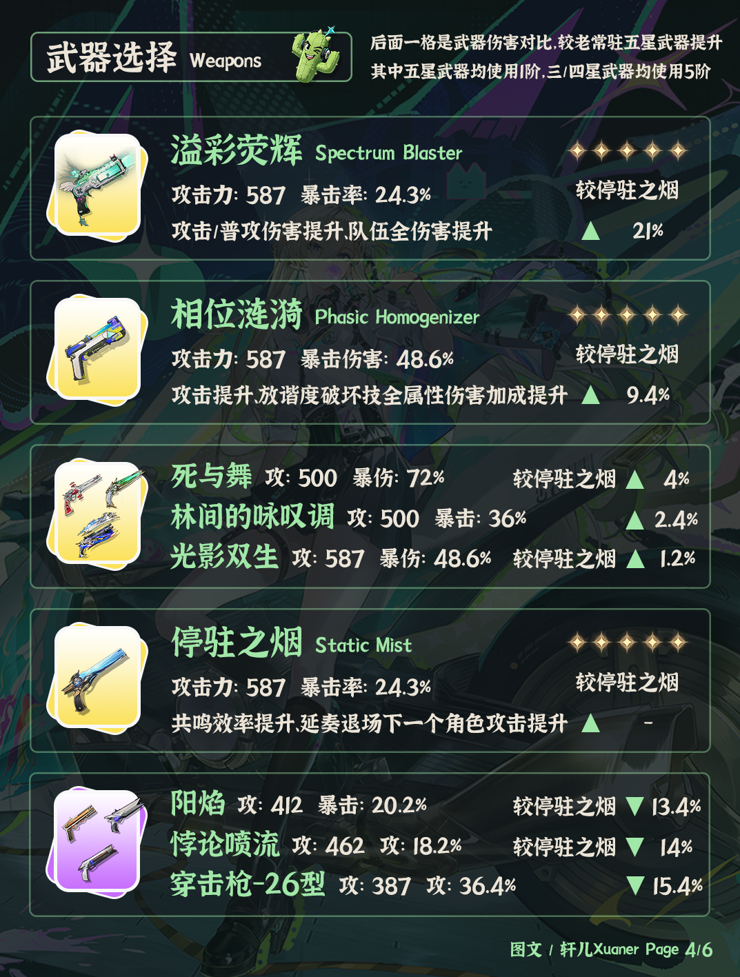 注意做主C首位要装配COST3双极·星升辉铳,提供衍射和普攻伤害加成。如只是0+0当个纯辅助,不输出,培养精力不够,可先用轻云出月五件套替代。
