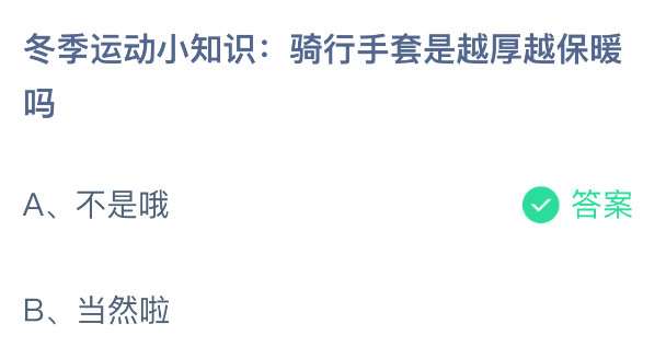 以上就是冬季运动小知识:骑行手套是越厚越保暖吗,支付宝蚂蚁庄园2026年1月6日答案最新,更多精彩内容,请点击关注0405手游网更新!