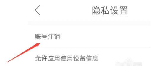进入隐私设置菜单栏中,找到账号注销选项,点击进去。