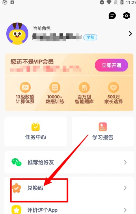 在我的界面,点击【兑换码】