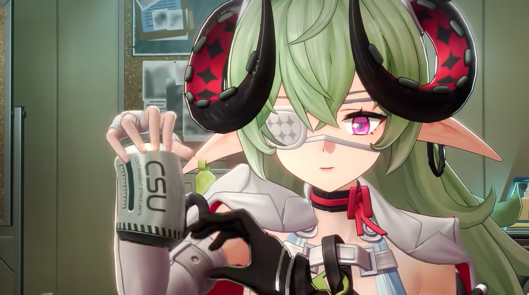 战斗定位上来说,伊洛伊大概率是游戏里第一个正经的治疗角色。之前虽然有早雾能提供一些辅助效果,但专门负责治疗的角色确实还没有出现过。胸前的十字标记已经很明显了,这基本就是治疗职业的标配符号。不过考虑到她恶魔角和眼罩的设计,单纯的治疗可能性不大,应该会混合一些debuff技能。