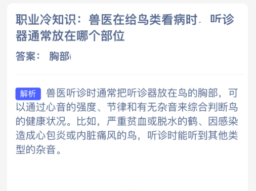 1、职业冷知识:兽医在给鸟类看病时,听诊器通常放在哪个部位