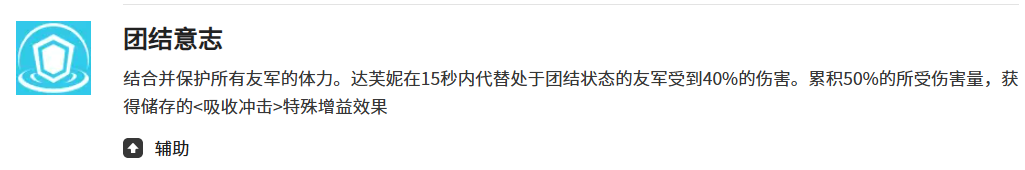 达芙妮的技能机制跟这个遗物的配合也相当不错。她的团结意志技能可以代替队友承受40个百分点的伤害,持续15秒时间。在这个过程中她会累积受到的伤害的50个百分点,转化成吸收冲击这个特殊buff。配合遗物的减伤效果,达芙妮在开启团结意志的时候能够帮队友挡下更多伤害,而且自己也不容易被打死。铁匠之神的祝福这个技能能给全队增加25个百分点攻击力,同时给达芙妮自己套上铠甲buff,吸收体力上限25个百分点的伤害。这个铠甲buff正好能触发遗物的额外减伤效果,让达芙妮在开大的时候变得特别硬。